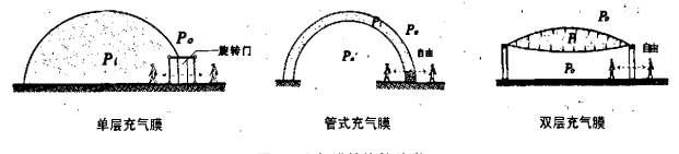 充氣建筑:充氣結(jié)構(gòu)是一種特殊的膜結(jié)構(gòu)形式,它利用內(nèi)外氣壓差使膜面張緊以抵抗外部荷載。充氣膜結(jié)構(gòu)按照形態(tài)可分為:?jiǎn)螌映錃饽そY(jié)構(gòu)、雙層充氣膜結(jié)構(gòu)和管式充氣膜結(jié)構(gòu)三種形式。