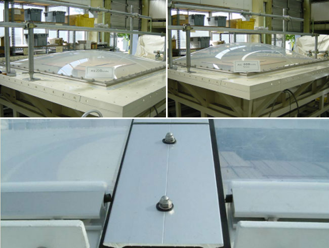 當(dāng)積雪時(shí),如果自重及雪荷載產(chǎn)生的負(fù)荷超過(guò)內(nèi)壓,由于膜面要塌陷,所以應(yīng)防止發(fā)展性兜水現(xiàn)象的發(fā)生。當(dāng)設(shè)置備用設(shè)備,為防止暴風(fēng)時(shí)發(fā)生震顫現(xiàn)象以及防止積雪時(shí)發(fā)生干癟和兜水現(xiàn)象,本工程在積雪時(shí)和暴風(fēng)時(shí),自動(dòng)控制系統(tǒng)會(huì)提高內(nèi)壓至1000Pa以抵抗雪荷載、風(fēng)荷載。