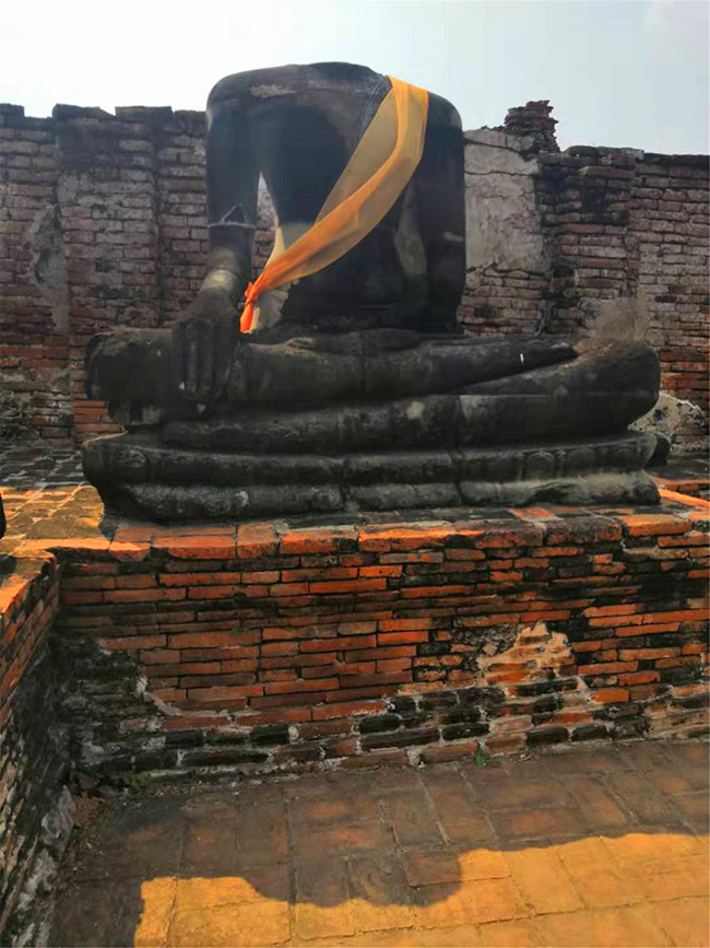 寺廟是遭受了緬軍的破壞,據(jù)說曾經這里還有一座純金裝扮的佛像,被緬軍所搶奪,現(xiàn)在的仰光大金塔里面的一部分黃金就是來自于這里的?;野咨耐獗?,是流水的滄桑印記,時間的變遷,他們是屹立在風中的見證者。