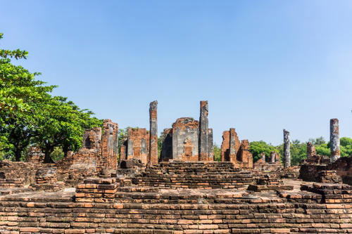 目前保存最完整的就是中間的三座佛塔,也是整個寺廟最具參觀性的地方,這三座佛塔其實是骨灰塔,里面存放著包若瑪特羅卡納國王以及他的兩個兒子的遺骸,其實就是大城王朝的一世、二世、三世。