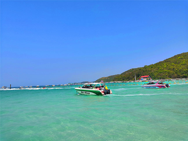 這里的水質比號稱最好海水的芭提雅海灘還要干凈,因為能用眼睛透視水下好幾米,可以看到那些有趣的魚兒在水里游啊游,在附近還有大片美麗的珊瑚,可以通過玻璃底觀光小船看海底。