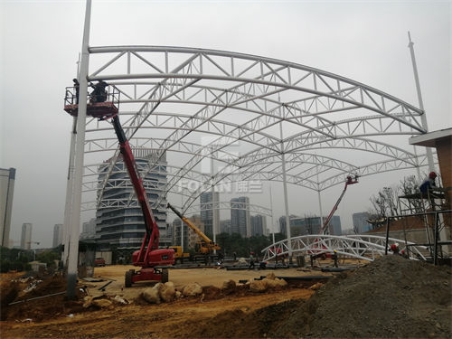 該項(xiàng)目坐落于九江向陽生態(tài)公園平坦處,占地面積約4268平方米,我司從今年3月中旬開始動(dòng)工,經(jīng)過深圳市佛蘭空間膜結(jié)構(gòu)有限公司工程項(xiàng)目團(tuán)隊(duì)人員的持續(xù)施工,歷時(shí)四個(gè)多月,九江膜結(jié)構(gòu)風(fēng)雨門球場終于竣工并獲得了甲方的高度贊譽(yù)。