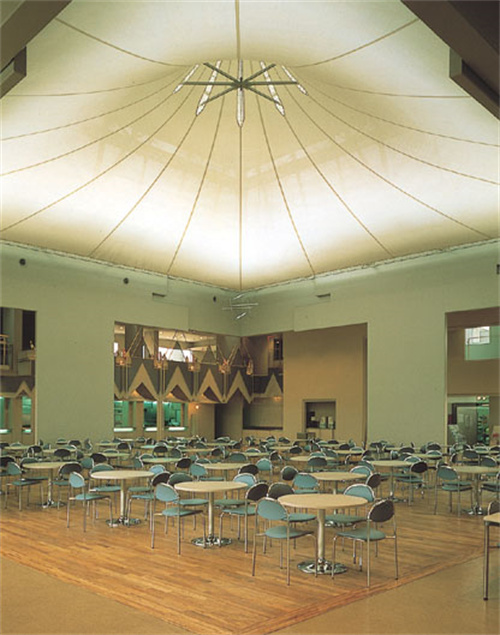 最后分享膜結(jié)構(gòu)在餐廳吊頂?shù)倪\(yùn)用。