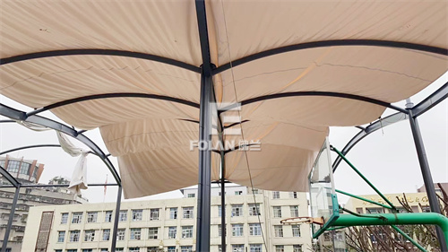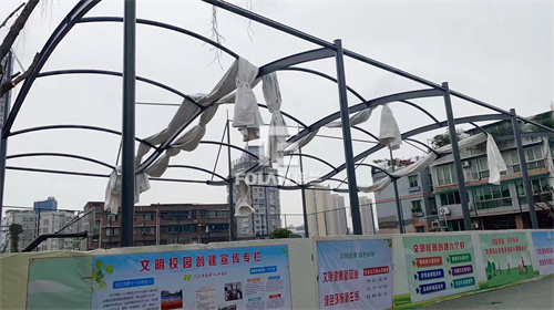 該學(xué)校風(fēng)雨操場位于四川省內(nèi)江市,佛蘭空間負(fù)責(zé)該球場鋼結(jié)構(gòu)的制作、加工、安裝和膜材的制作、加工、安裝。項目人員進(jìn)場后,辛苦施工,不足月余,該項目順利竣工。