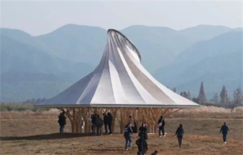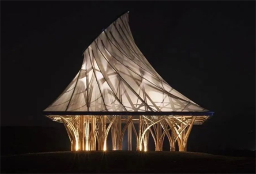 ▲膜結(jié)構(gòu)酒店門頭,佛蘭空間已竣工項目,喇叭花造型,結(jié)構(gòu)輕盈,已成為當(dāng)?shù)氐貥?biāo)性酒店。