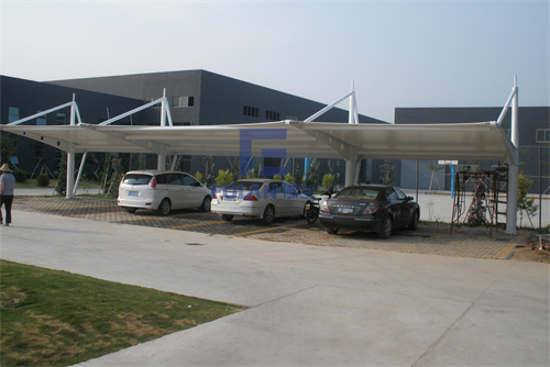 膜結(jié)構(gòu)停車棚,是以建筑織物,即膜材料為張拉主體,與支撐構(gòu)件或拉索共同組成的結(jié)構(gòu)體系。它憑新穎獨(dú)特的建筑造型,良好的受力特點(diǎn),已成為大跨度空間結(jié)構(gòu)的主要形式之一。
