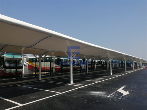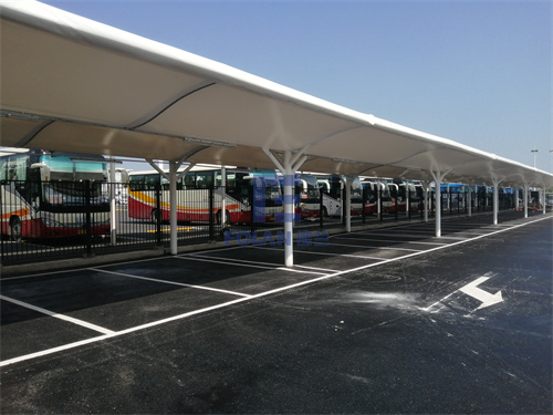 為養(yǎng)護(hù)集團(tuán)大巴車,也為給員工提供一個(gè)可遮陽擋雨的上下車場地,深圳北行車公寓興建了一個(gè)膜結(jié)構(gòu)停車棚。