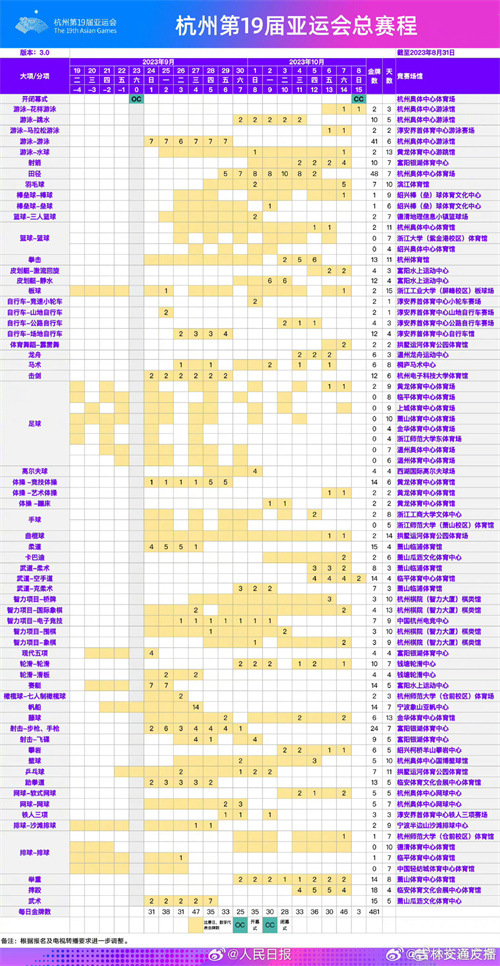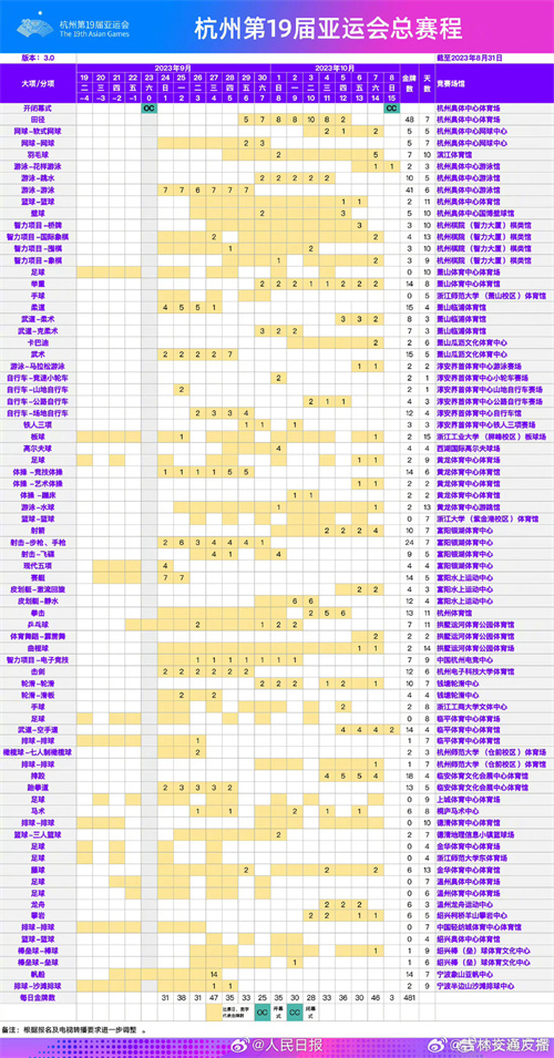 最后附上最新的亞運(yùn)會(huì)賽程。