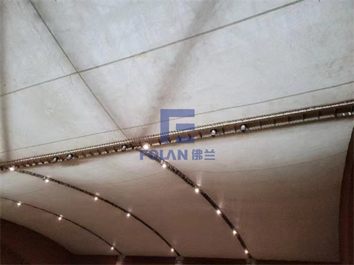 考慮到會(huì)議中心的吸音性與自潔性,在重新更換膜材時(shí),佛蘭公司采用了PTFE內(nèi)膜。PTFE內(nèi)膜有著更舒適的光學(xué)性能及更好的自潔性、吸音性和安全性,既能營造舒適明亮的會(huì)議中心室內(nèi)環(huán)境,還能起到美化和提升室內(nèi)逼格的作用!