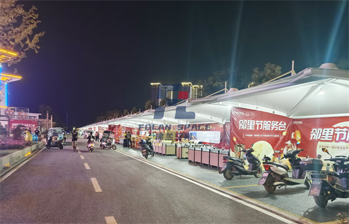 此外,膜結(jié)構(gòu)車棚在節(jié)假日或社區(qū)活動(dòng)時(shí),還能化身為臨時(shí)商鋪或展覽區(qū),為當(dāng)?shù)厣虡I(yè)活動(dòng)提供了便利條件,能促進(jìn)當(dāng)?shù)亟?jīng)濟(jì)發(fā)展。