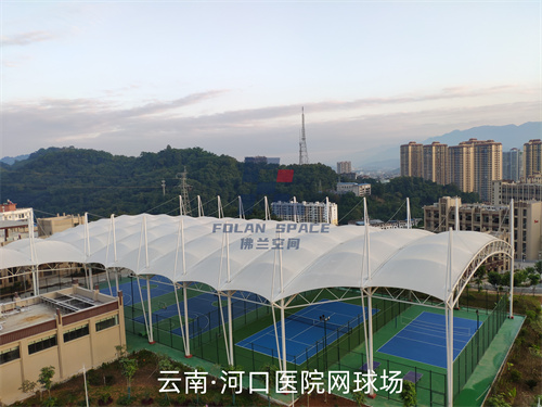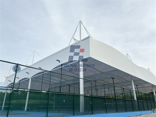 6月,佛蘭空間在深圳大運中心新竣工了一座膜結(jié)構(gòu)網(wǎng)球場,該膜結(jié)構(gòu)可覆蓋三片網(wǎng)球場地,投影面積達2500㎡,采用PVDF膜材,高穹頂設(shè)計與流線,四周增加立面膜材,可防西曬和掃雨,給網(wǎng)球愛好者擁有風(fēng)雨無阻的打球體驗。
