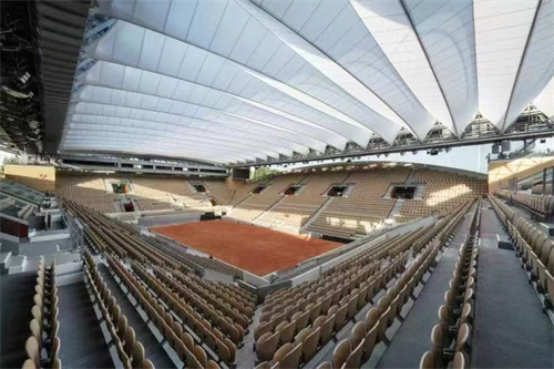 膜結(jié)構(gòu)所用的膜材,一般具有良好的透光性,大部分自然光線能夠透過膜材進入室內(nèi),使得膜結(jié)構(gòu)球場內(nèi)部擁有良好的采光條件,這樣就能節(jié)約照明能耗。溫布爾登網(wǎng)球中心使用的膜狀屋頂能夠讓95%的日光通過,為觀眾提供良好的視線。