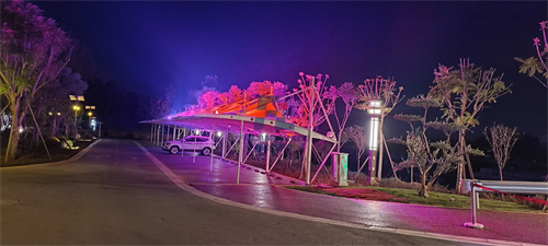 佛蘭空間項(xiàng)目——小區(qū)膜結(jié)構(gòu)車棚,燈光變幻
