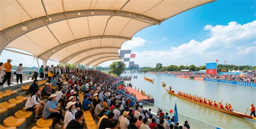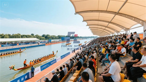 2025年深圳市觀瀾區(qū)龍舟賽,現(xiàn)場不僅有膜結(jié)構(gòu)觀賽區(qū),還有膜結(jié)構(gòu)遮陽傘膜,烈日下體感能降溫8℃,由此看來,膜結(jié)構(gòu)在龍舟賽事上發(fā)揮著無比重要的作用。