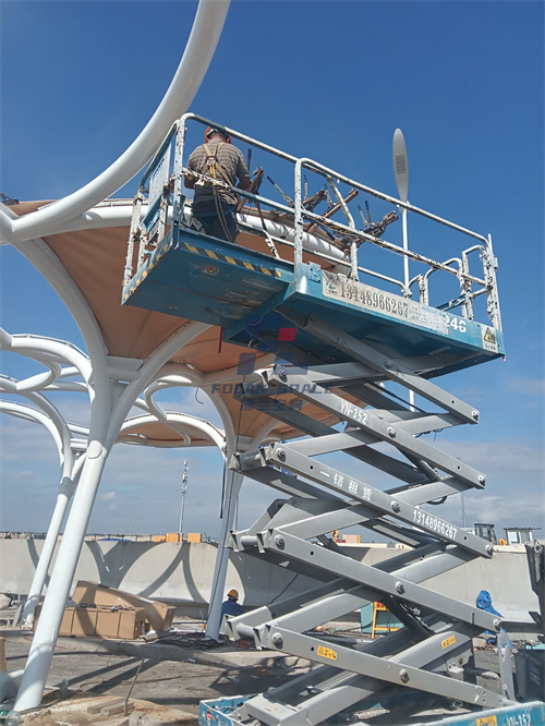 這是工程的“華彩樂章”。我們選用的膜材,具有優(yōu)異自潔、防火、高透光率及超強(qiáng)耐候等特性,極其適合機(jī)場這一注重安全與維護(hù)的場所。在張拉過程中,我們的工程師使用專用工具,通過“分批分級、對稱同步”的張拉法,精確控制每一片膜的預(yù)應(yīng)力,最終使柔性的膜材在力的作用下,形成穩(wěn)定、挺拔且光影效果極佳的雙曲拋物面。