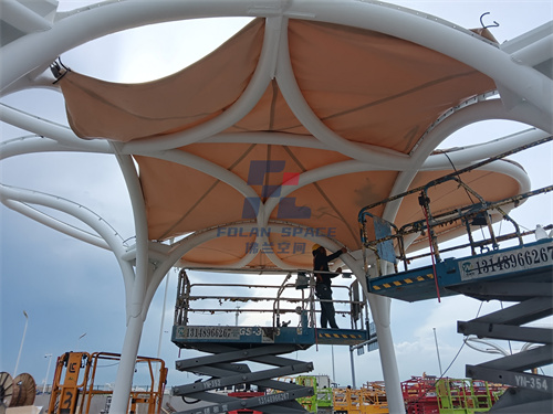 鋼結(jié)構(gòu)是膜的“骨骼”。佛蘭膜結(jié)構(gòu)采用高性能防腐涂料,經(jīng)過嚴(yán)格的表面除銹處理后,進(jìn)行多層均勻噴涂。這不僅提供了卓越的耐候性,確保了數(shù)十年不生銹,更重要的是,一個(gè)平整光滑的鋼結(jié)構(gòu)表面,是后續(xù)膜結(jié)構(gòu)張拉形成完美曲面的基礎(chǔ)。