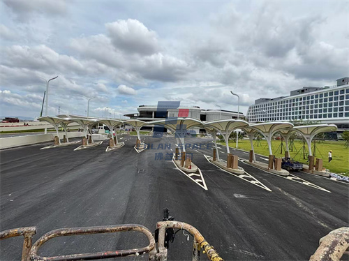 廣州白云國際機(jī)場三期擴(kuò)建工程是國家“十四五”規(guī)劃的重點(diǎn)工程,其新建的交通中心將是未來旅客集散的核心樞紐。因此,出入口閘機(jī)雨棚不再僅僅是功能性的遮蔽物,更是承載著城市形象與人文關(guān)懷的“第一眼印象”。佛蘭膜結(jié)構(gòu)很榮幸,能以卓越的膜結(jié)構(gòu)技術(shù),為這一國門樞紐打造既堅(jiān)實(shí)耐用又輕盈優(yōu)雅的“白云之翼”。