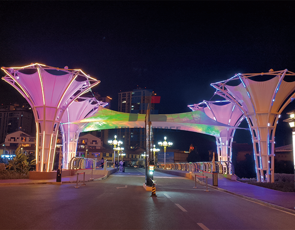 云南宜良鄉(xiāng)鴨湖小區(qū)膜結(jié)構(gòu)停車棚及主入口項目
