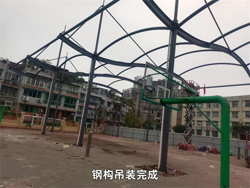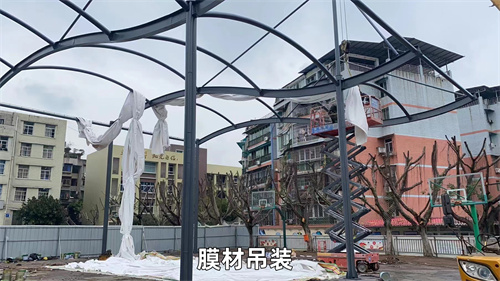 佛蘭空間已竣工案例——四川內(nèi)江第十一小學(xué)校風(fēng)雨球場(chǎng)就采用了綜合吊裝法,具體步驟可看下圖。