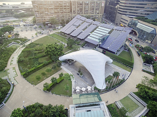 ZCB竹亭是一個(gè)公共活動(dòng)空間,是建筑業(yè)議會(huì)于2015年夏天在香港九龍灣建造的零碳建筑。這是一個(gè)四層樓高的,大跨度彎曲主導(dǎo)網(wǎng)架結(jié)構(gòu),占地面積約350平方米,可容納200人。