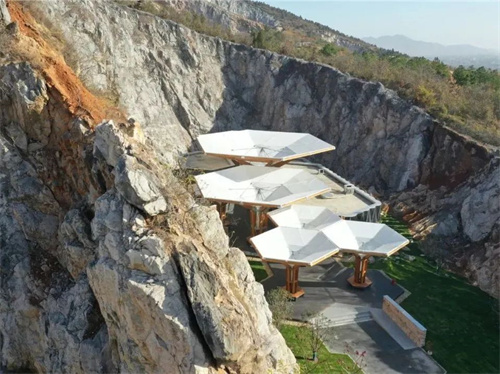 項(xiàng)目所在的礦坑公園位于湯山山體南麓,這里是湯山于2013年停工的,最大的廢棄礦坑—龍泉采石場(chǎng)。