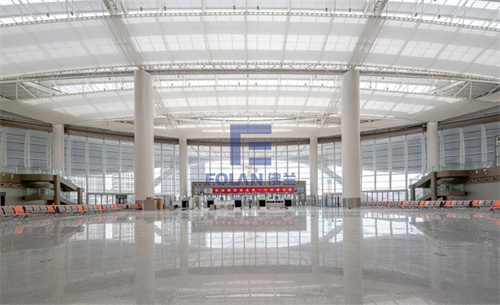 PTFE膜材具有透光率高,防火難燃、自重輕、強(qiáng)度高、自潔性好,不受紫外線影響、抗疲勞、耐扭曲、耐老化、使用壽命長(zhǎng)等優(yōu)點(diǎn),因此被廣泛應(yīng)用于有采光需求的大型公共設(shè)施,比如體育場(chǎng)館的屋頂系統(tǒng)、機(jī)場(chǎng)大廳、展覽中心、交通站臺(tái)、通道走廊等。
