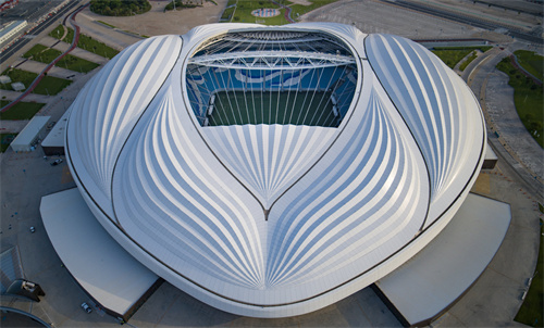 卡塔爾AlJanoubStadium體育場是座可容納4萬人的足球場,體育場的可伸縮式屋頂采用了PTFE膜材,展開時(shí)屋頂就像一個(gè)船帆,覆蓋在球場的上方,為夏天足球比賽創(chuàng)造了一個(gè)遮蔽的環(huán)境。