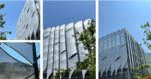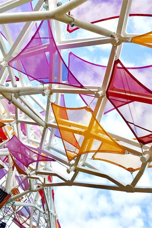 網(wǎng)格膜因其特殊的結(jié)構(gòu)和開孔率,能夠?qū)崿F(xiàn)不同程度的透光效果,其材質(zhì)和顏色也可根據(jù)實(shí)際需求進(jìn)行選擇,從而實(shí)現(xiàn)個性化的景觀設(shè)計(jì)。因此,網(wǎng)格膜在景觀領(lǐng)域也有廣泛運(yùn)用,可遮陽,可塑造當(dāng)?shù)鼐坝^。