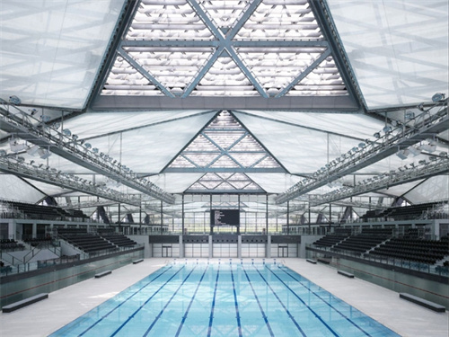 深圳大運(yùn)會體育中心,外觀類似“鉆石”,結(jié)構(gòu)外層采用陽光板及玻璃幕墻,內(nèi)層使用透光率高、吸音性強(qiáng)、自潔性好的PTFE網(wǎng)格內(nèi)膜,面積超過10萬平方米。