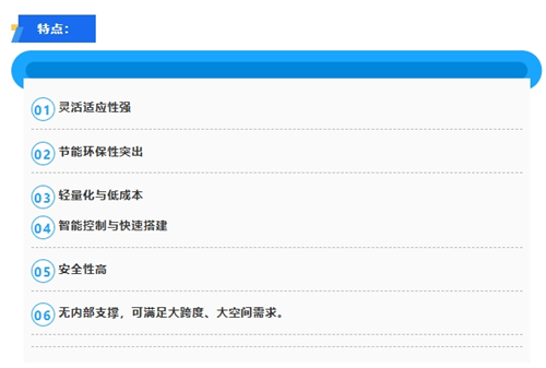 應(yīng)用場(chǎng)景:體育與文化活動(dòng)場(chǎng)館、業(yè)與倉(cāng)儲(chǔ)設(shè)施、環(huán)保治理領(lǐng)域、農(nóng)業(yè)與科研設(shè)施、應(yīng)急與臨時(shí)設(shè)施、特殊領(lǐng)域創(chuàng)新應(yīng)用。