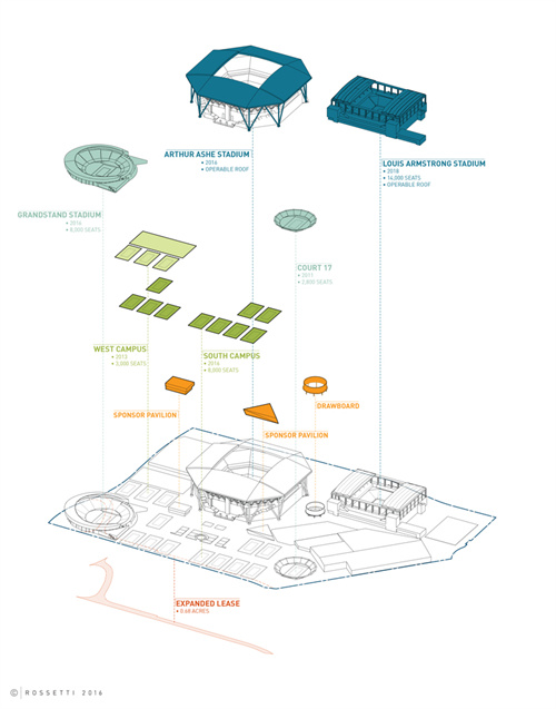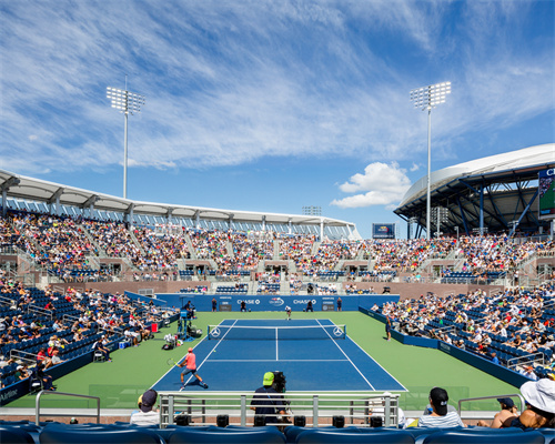 這座全新的Grandstand體育場于2018年秋天完工,是美國網(wǎng)球協(xié)會(huì)國家網(wǎng)球中心為迎接當(dāng)年美網(wǎng)而建的核心場館。它是一座擁有8,125個(gè)座位的創(chuàng)新輕量結(jié)構(gòu)體育場。