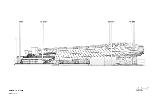 立面上樹葉般的圖案,讓體育場自然地融入了公園環(huán)境,同時(shí)其創(chuàng)新的形態(tài)和復(fù)雜的幾何結(jié)構(gòu),使其本身成為校園內(nèi)一個(gè)令人過目不忘的建筑標(biāo)志。