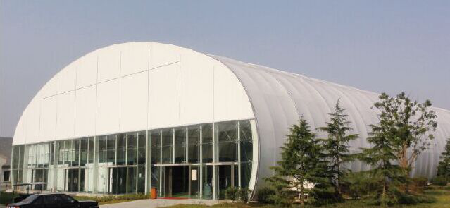 膜結(jié)構(gòu)建筑:采用高強度聚酯纖維編織、表面涂有高強自潔性涂層的建筑膜材,在鋼結(jié)構(gòu)、鋼索或充氣結(jié)構(gòu)作用下成型。具有審批快、造價低廉,節(jié)約投資;氣密性好,保溫隔熱;防火阻燃、大跨度,大空間;結(jié)構(gòu)簡單,施工周期短;環(huán)保;使用壽命15年以上等特點。