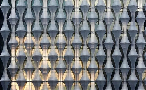 ETFE膜結(jié)構(gòu)外墻由四層ETFE制成,共有57個氣枕,使用定制的白色墨水打印圖案和氣動裝置來控制進(jìn)入建筑物的透光量,節(jié)約成本的同時,還能增加建筑物的舒適度。