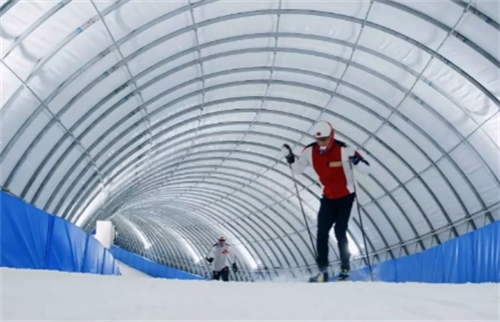 位于河北承德體育訓(xùn)練基地的這條“冰絲帶”,是世界首個氣膜越野滑雪賽道——陸地雪洞。長達(dá)2.5公里的雪洞,依據(jù)丘陵起伏而修建,四季有雪,是目前國內(nèi)最長的封閉式越野滑雪賽道。