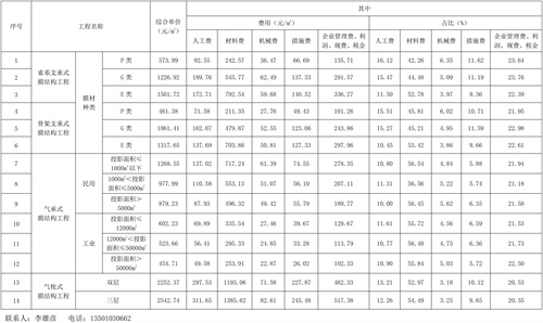四、關(guān)于材料價(jià)格,本指標(biāo)中G類、P類膜材及其他材料均考慮為國(guó)產(chǎn)合格產(chǎn)品,而E類膜材則按進(jìn)口合格產(chǎn)品考慮。
