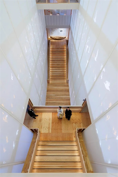 中庭頂部天窗與立面開口形成空氣對流路徑,結(jié)合木結(jié)構(gòu)的通透性,實現(xiàn)被動式降溫,降低能源消耗。