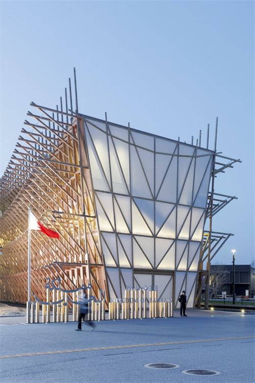 展館設(shè)計融合阿拉伯航海文化與日本木構(gòu)技藝,體現(xiàn)跨地域文化交流,如木材選用日本雪松、膜材技術(shù)結(jié)合現(xiàn)代工程。通過低環(huán)境影響設(shè)計,巴林館成為循環(huán)建筑典范,回應(yīng)全球氣候挑戰(zhàn),并傳遞島國對海平面上升等環(huán)境議題的關(guān)注。
