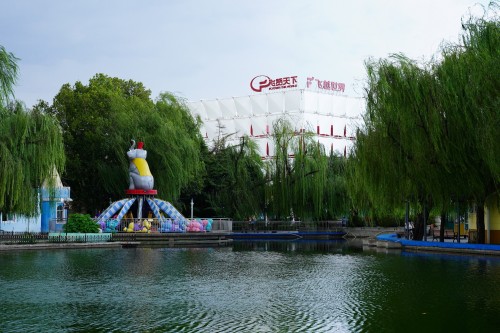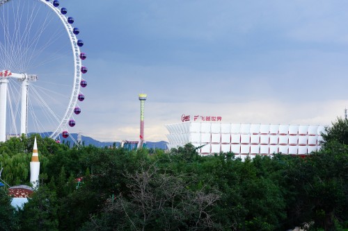 北京飛覽天下飛行劇場,位于北京西部石景山游樂園,是一座模擬飛行游樂活動的劇場,于2019年完工。通過在巨型屏幕上投射高質(zhì)量的中國大美河山及世界各地的壯觀景色圖像,為游客提供令人難以抗拒的沉浸式飛行體驗。